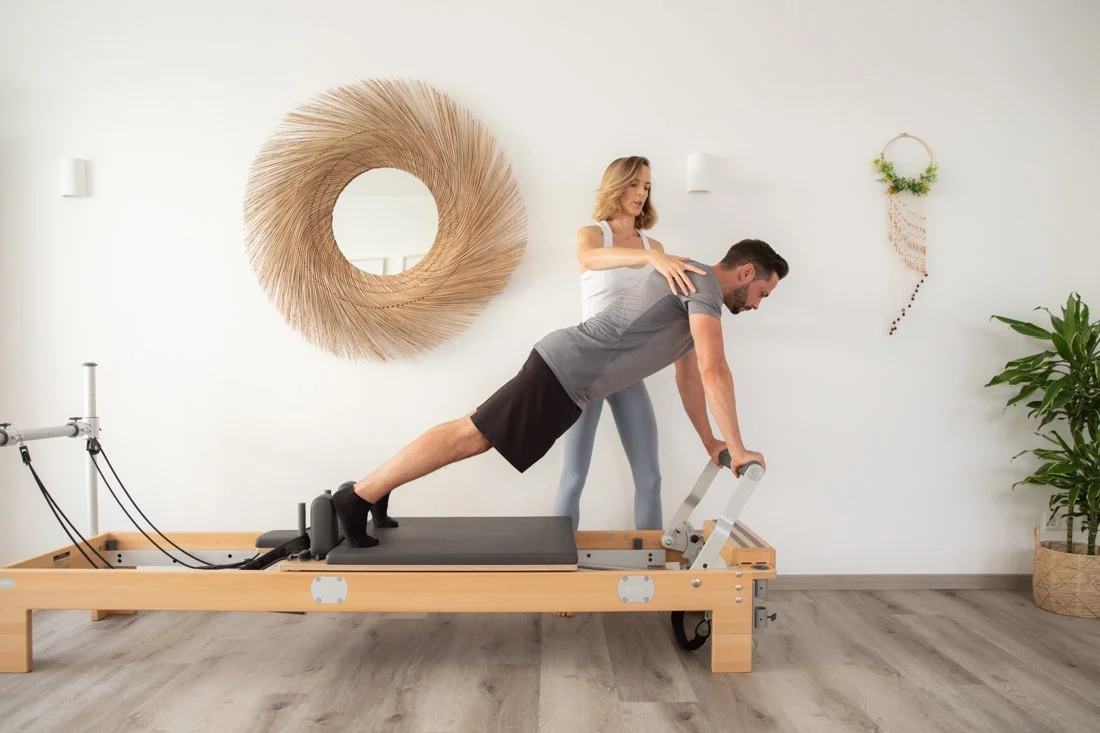 Quite possibly the most well known and popular piece of Pilates equipment. The Reformer allows you to go deeper into your Pilates practise with the added use of springs & straps, creating various amounts of resistance. It can also offer more support to exercises that may be more advanced when performed on the mat. Although it looks a little daunting, the Reformer allows for a super fun workout!